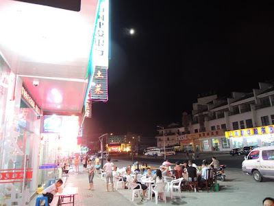 Apesar da quantidade de restaurantes, não foi fácil escolher um. Eles queriam muito nos servir, mas pedíamos para olhar o cardápio, tudo em chinês, não entendíamos nada!!! Tentamos uns 5 ou 6. Raramente tinha a foto dos pratos, e quando tinha, tinha uma fotinho de tartaruga, por exemplo... Não, obrigada!