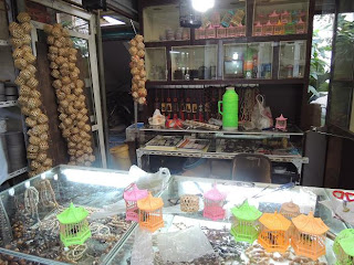 Fiquei surpresa com a variedade de tartarugas e grilos para todos os lados! Ehmuito comum na China ter um grilo como animal quase de estimação, que serve geralmente para combates de grilos. O barulho é ensurdecedor!